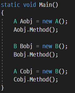 이와 같은 메서드 숨기기는 완전한 다형성을 표현하지 못하는 한계를 갖고 있습니다. 따라서 기반 클래스를 설계할때는
