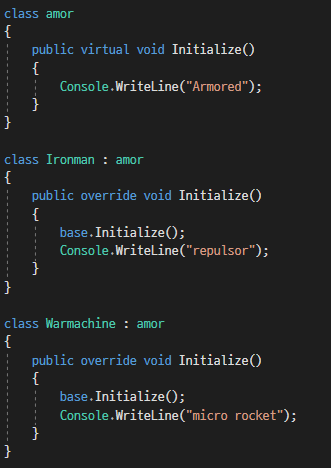 두번째는 amor 의 ironman에다가 ironman클래스로 선언을 해서 override를 거쳐 repulsor와 Armored가 뜰것입니다.