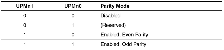 UPMn1..0 (Usart Parity Mode) : 패리티 모드를 설정한다.