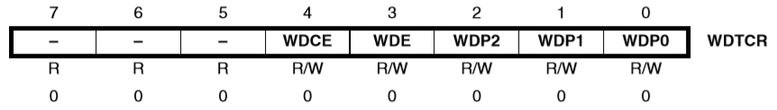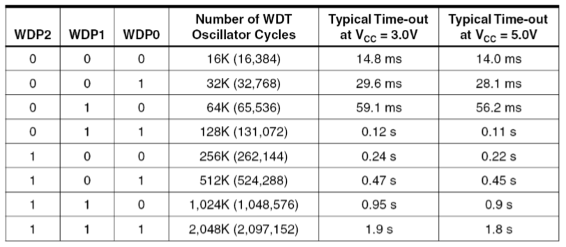 WDP0...2 (WatchDog Timer Prescaler) : prescaler를 밑 그림처럼 설정한다.