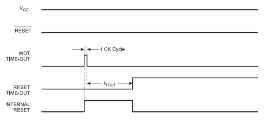 워치독 타이머가 지정한 주기 이상이 지나면 리셋펄스가 발생하여 리셋이 시작되고,